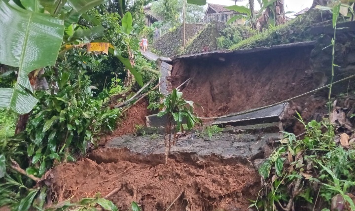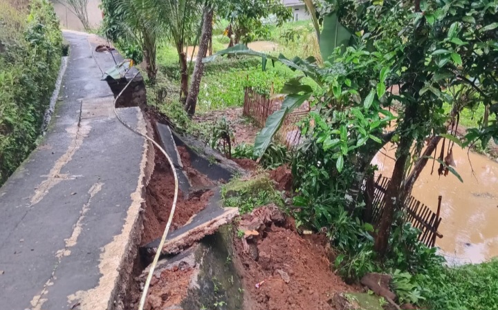 Jalan Penghubung Antar Warga Terbelah Longsor Akibat Intensitas Hujan Tinggi