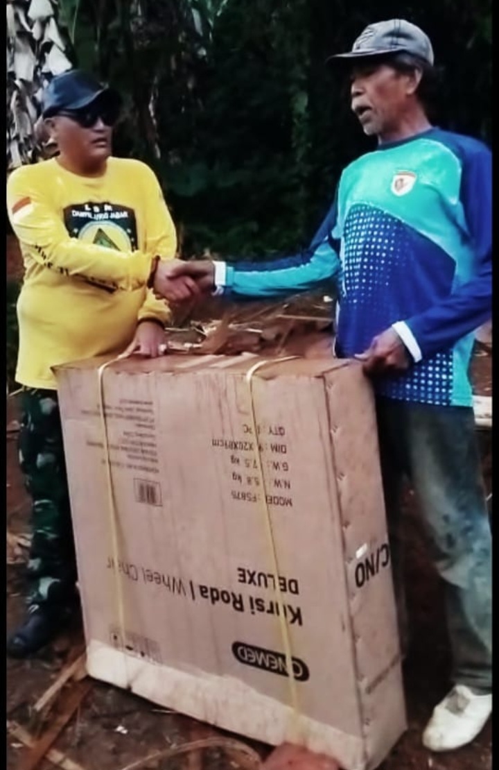 BICARASUKABUMI.ID – Dalam rangka peduli terhadap kemanusiaan Lembaga Swadaya Masyarakat Dampit Peduli Lingkungan Jurang Rimba Gunung (Lsm dampal jurig) bersinergis dengan RS. Sekarwangi memberikan 1 unit kursi roda untuk Ibu Kartin (Janda Lumpuh). di Kp. Balekambang, Desa Ciengang, Kecamatan Gegerbitung, Kabupaten Sukabumi, Jawa Barat. Kamis (02/10/2025).