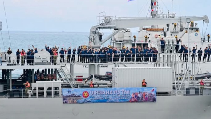 BICARASUKABUMI.ID – Presiden Prabowo Subianto menghadiri rangkaian agenda HUT ke 80 TNI yaitu acara Presidential Inspection di Kapal Perang Republik Indonesia (KRI) dr. Radjiman Wedyodiningrat (RJW-992) di Markas Komando Lintas Laut Militer (Kolinlamil), Tanjung Priok, Jakarta Utara, Kamis. (02/10/2025)