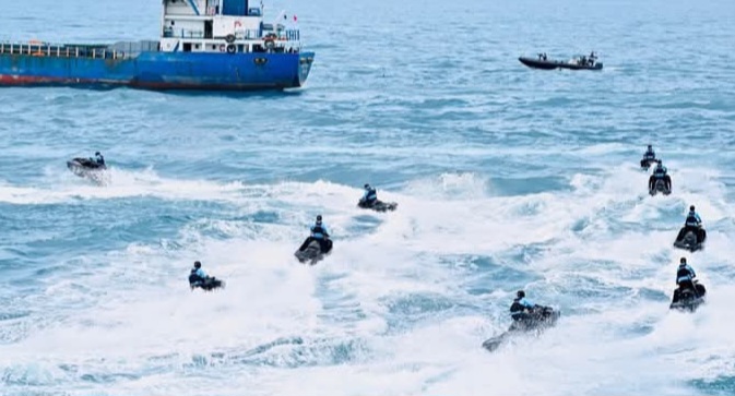 Presiden berlayar menuju Teluk Jakarta untuk menyaksikan defile dari puluhan kapal perang TNI Angkatan Laut serta sekaligus sebagai bukti kekuatan Angkatan Laut Indonesia.