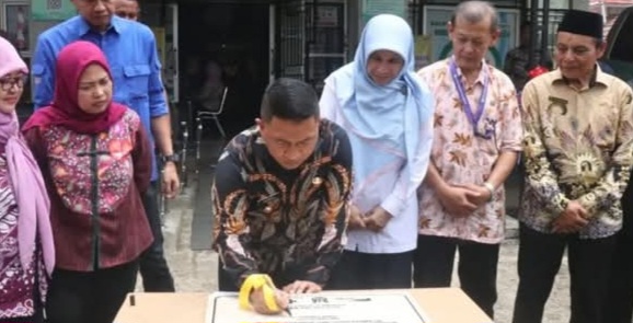 Kegiatan dilanjutkan dengan penandatanganan prasasti peresmian program peningkatan integrasi layanan primer UPTD Puskesmas Kadudampit.