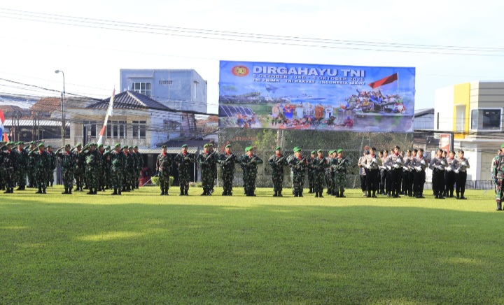 BICARASUKABUMI.ID – Kodim 0607/Kota Sukabumi menggelar upacara Hari Ulang Tahun (HUT) Tentara Nasional Indonesia (TNI) di Markas Komando Distrik Militer (Makodim) 0607/Kota Sukabumi, Jalan R.A. Kosasih, Ngaweng, Sukaraja, Kabupaten Sukabumi, Jawa Barat. Minggu (05/10/2025).